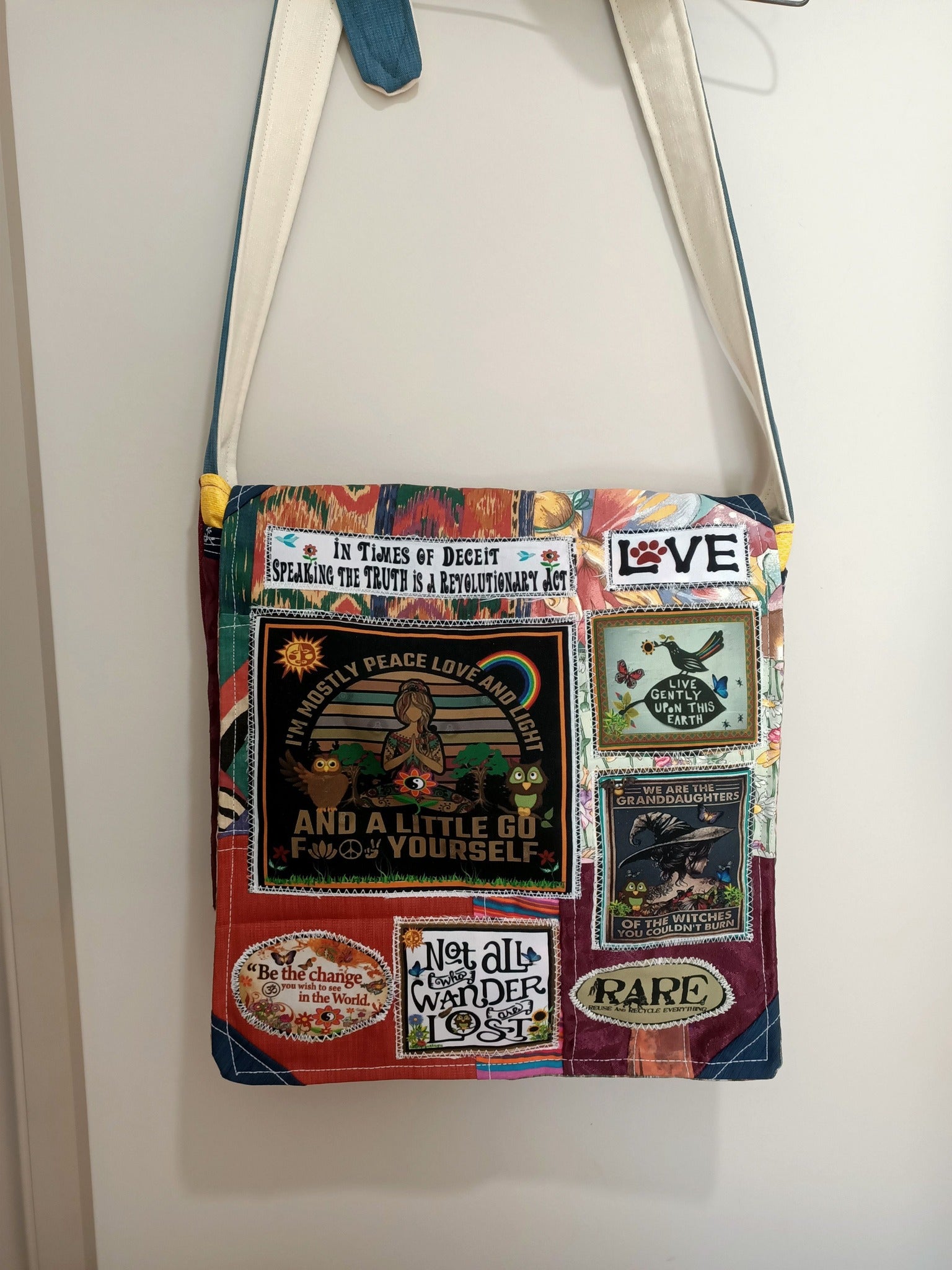 Here is the new Mostly Peace bag I made today....a bag about being true to oneself.....Hope you like it....For Australian customers this bag will be $105 when you get to the checkout.