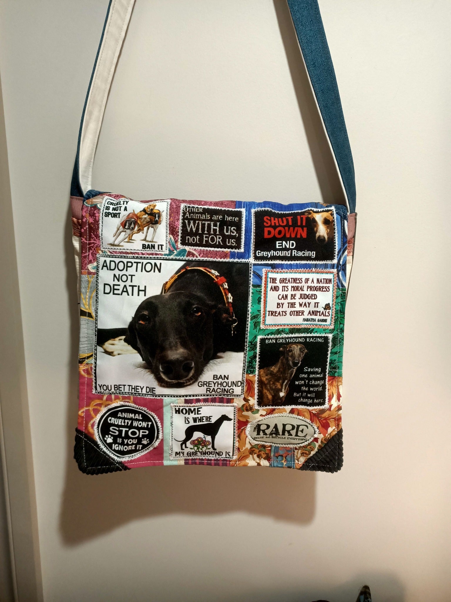 Here is the new Save the Greyhound bag I made today....speak out for those who need our voices and lets shut down this cruel industry, and wear a RARE bag…Hope you like the bag, sure to start a few conversations.....Hope you like it.....For Australian customers this bag will be $105 when you get to the checkout...