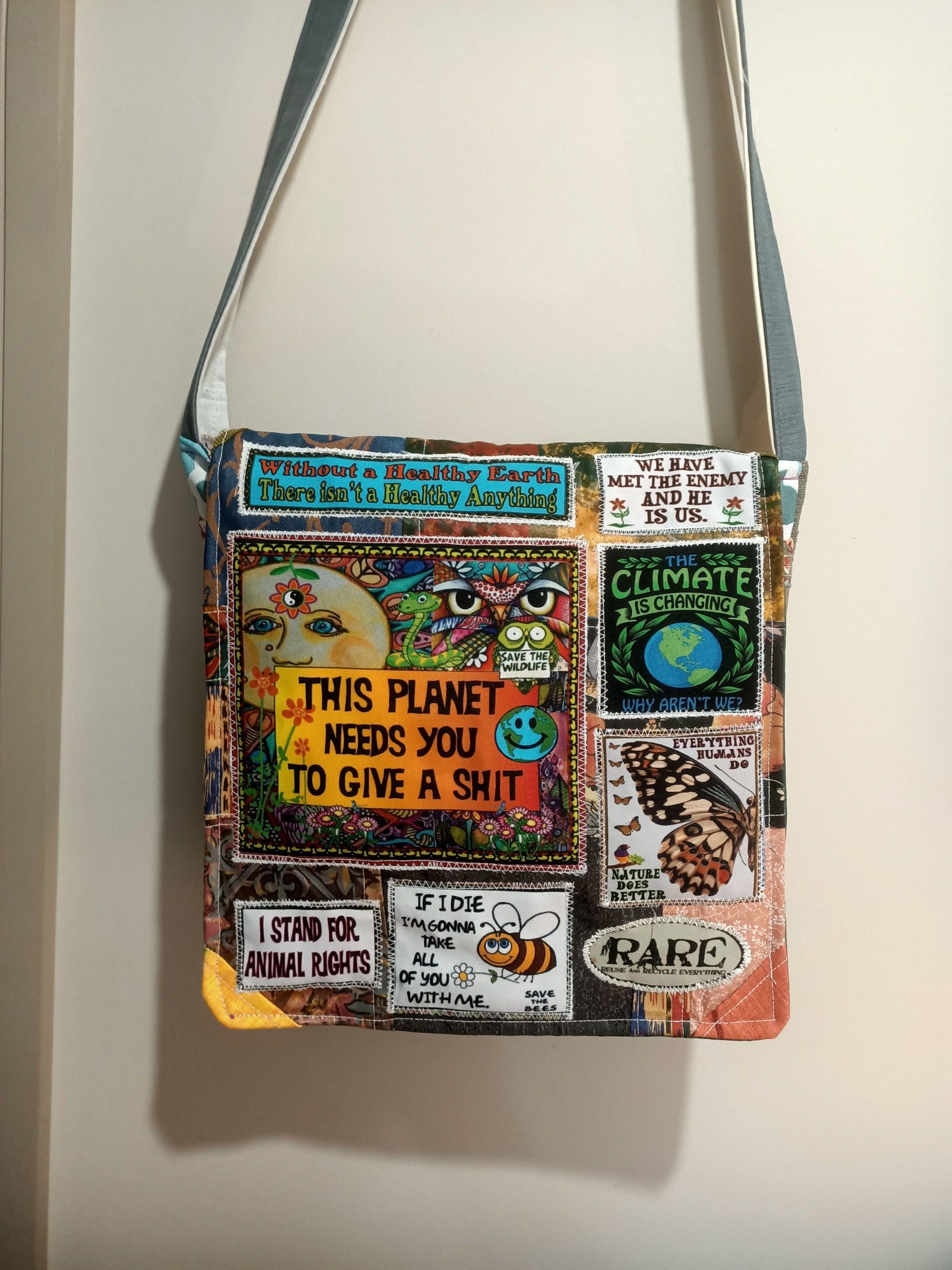 Hey everyone, here is the new Planet Needs You bag I made today….a straight forward message that is a truth…..a bag sure to get a few comments and start some interesting conversations….some lovely recycled materials make up this one…Hope you like it...For Australian customers this bag will be $105 when you get to the checkout.